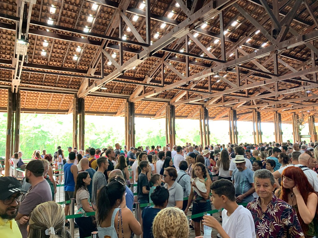 Ya del lado de la entrada a las cataratas lado Brasilero, hicimos cola para comprar tickets. El precio para extranjeros es de R$72/USD$76, éste incluye el autobús que va al punto panorámico de la Garganta del Diablo.