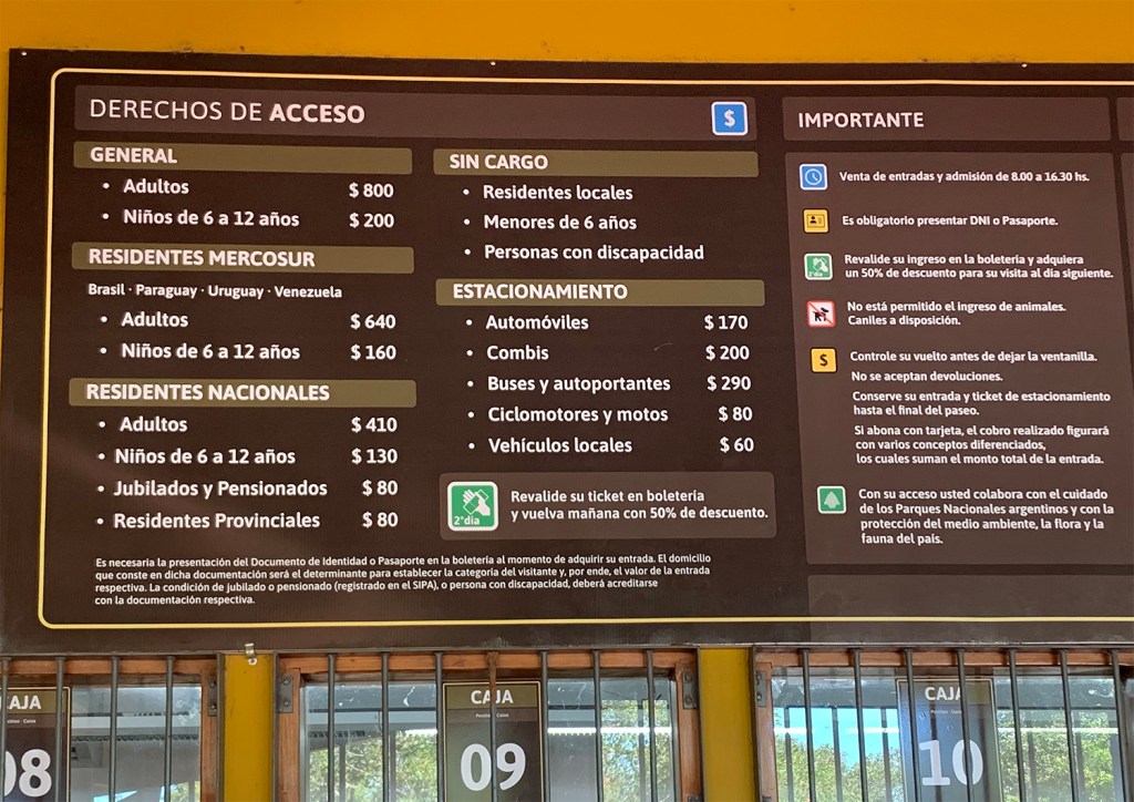 - Ticket de ingreso al Parque Nacional Iguazú (Argentina)– ARS$800 (Pesos Argentinos) o USD$13 aprox.