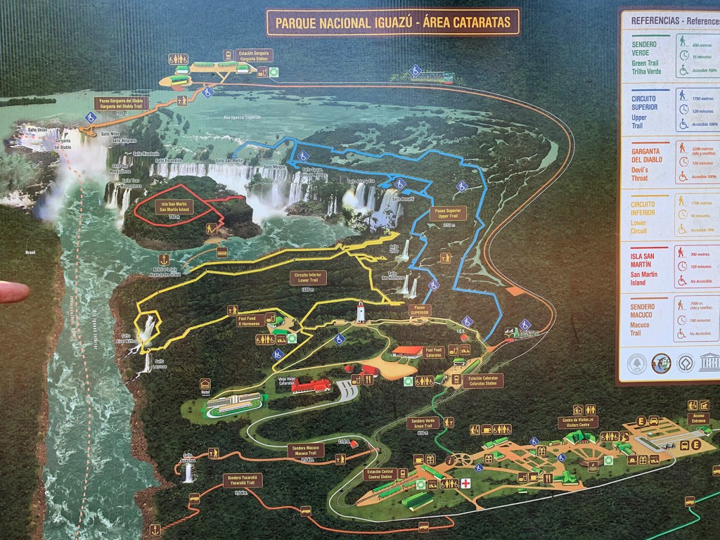 Nosotros fuimos a 3: Sendero Verde, Circuito Superior (azul) y Garganta del Diablo (naranja) porque había un circuito que estaba cerrado y otro tomaría casi todo un día y decidimos dejarlo.